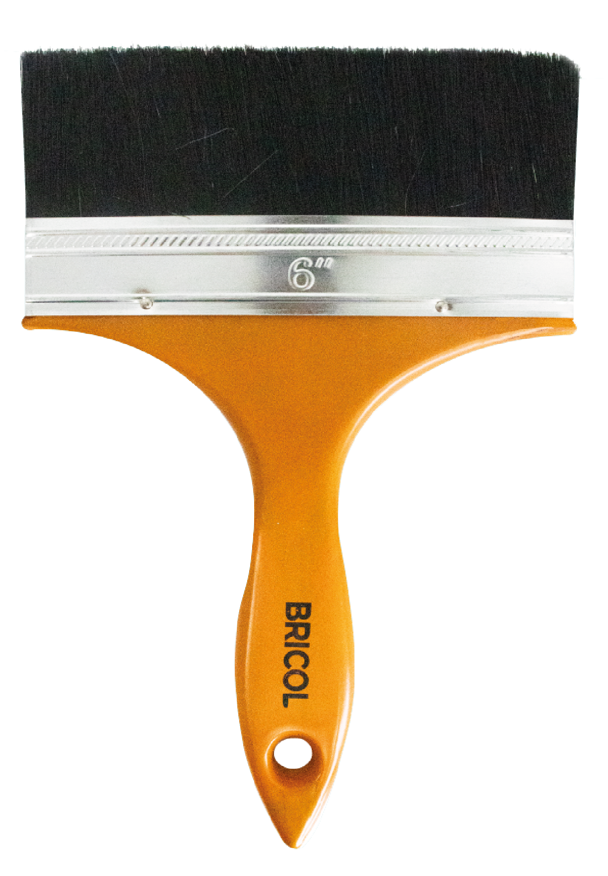 Brocha profesional de 6” pulgadas con cerdas70% sintéticas y 30% naturales, diseñada para acabados uniformes y de alta calidad.